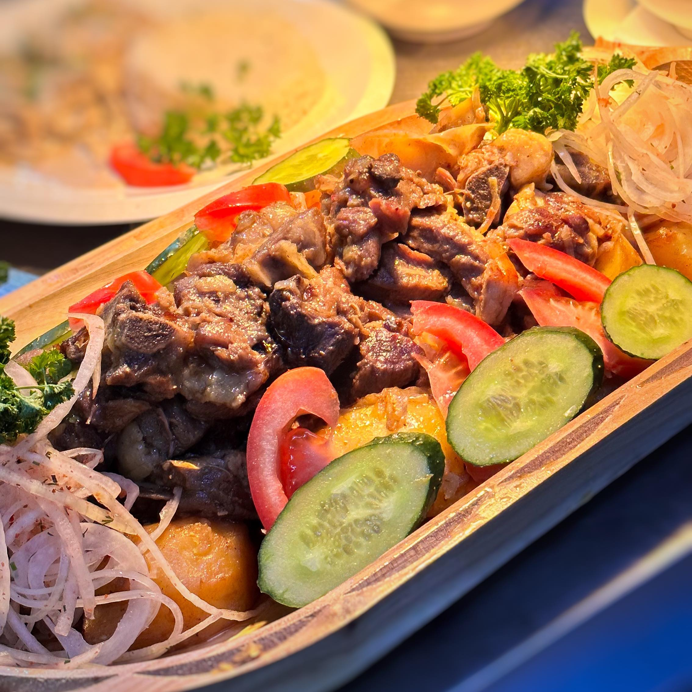 У нас вы можете насладиться настоящим пловом, лагманом, манты, самсой, куурдаком, шорпо и многими другими блюдами, которые передают колорит нашей кухни.